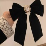 1 piece Vintage hair bow spring clip black